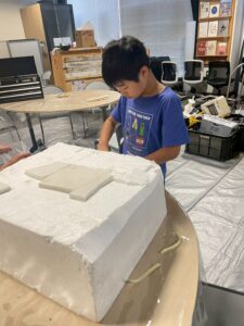今回の参加者は発泡スチロールとウレタンを使って椅子を作ってくれました