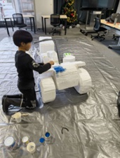 12/6 モビリティー開発広場 活動日記 2025.12.09 こんにちは。さっぽろキッズベーススタッフのゆきおです。しばらく雪が降らずにいた札幌でしたが一昨日ごろ雪がふり一気に雪化粧をした町や山々などが見られるようになってきましたね。 今回はモビリティー開発広場についてです。 大体の形はできたようなので今回は乾き具合を見つつモデルを塗装する作業をしました。 完成形と見比べつつBOSSと一緒に協力して作業をしていました。 興味があれば是非参加してみてください。